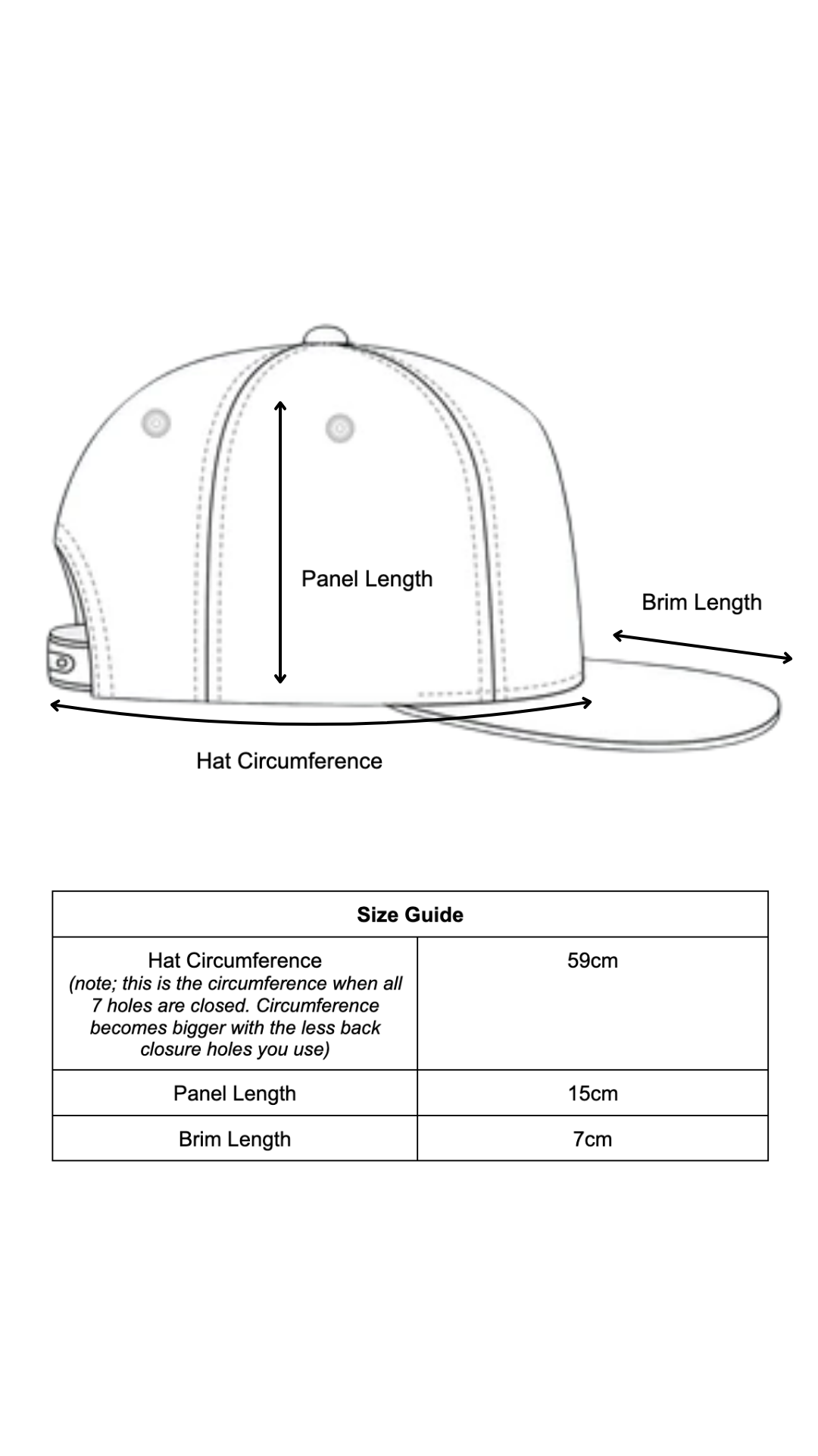 • 7 hole snapback closure